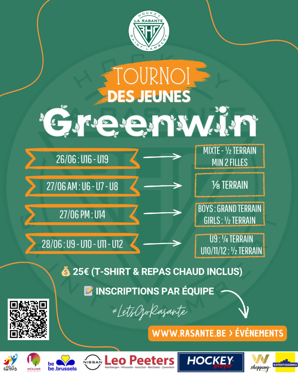 Zoals elk jaar nodigt de jeugdcommissie van Rasante jullie graag uit op ons traditionele grote toernooi, de Greenwin, dat dit jaar plaatsvindt van vrijdag 26/6 tot zondag 28/06.